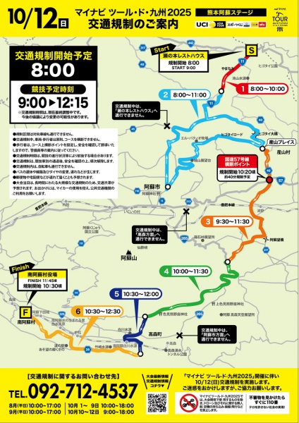大会当日は、九重町の近隣である阿蘇地域において、大規模な交通規制【規制時間中は車両通行止め】が実施されます。