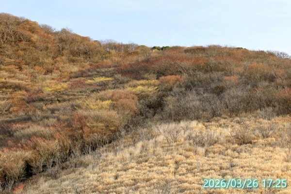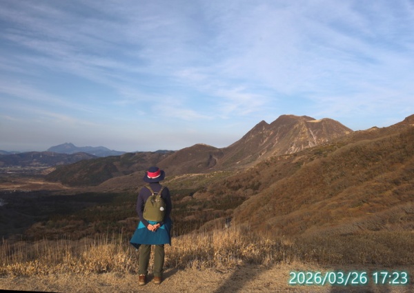 ラストは、四阿を視野に入れ涌蓋山遠望。この日の日没は、18時30分、ここから牧ノ戸駐車場までは10分足らずなので、登り始め16時10分でも日没前に余裕をもって戻れる手軽さ。